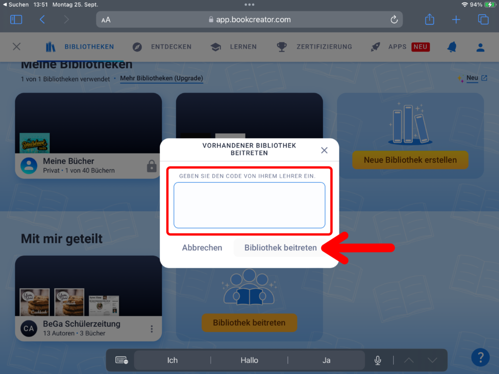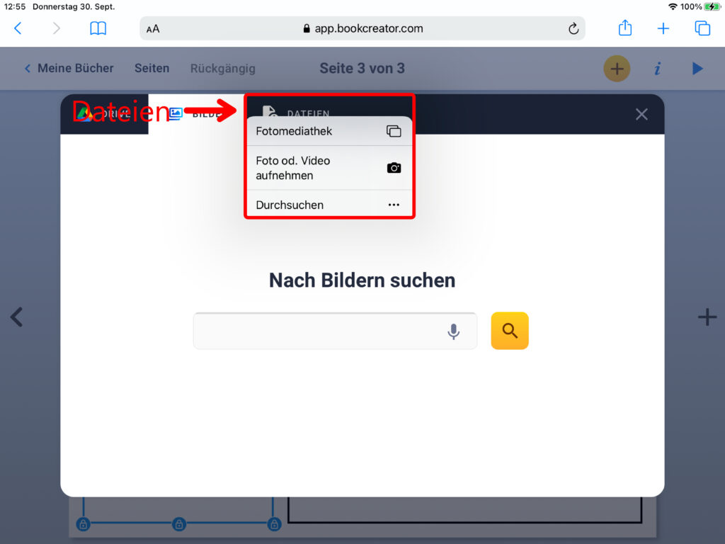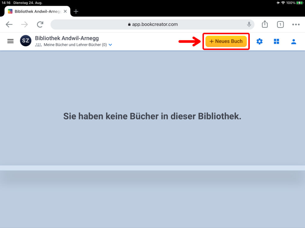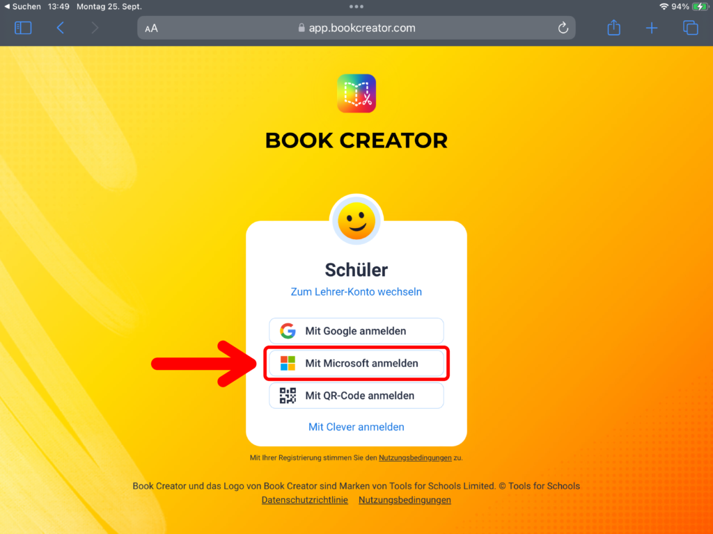 Öffne auf deinem iPad die App «Book Creator». Du findest sie im Ordner «Medienproduktion». Melde dich mit deinem Login für Microsoft Office 365 an.