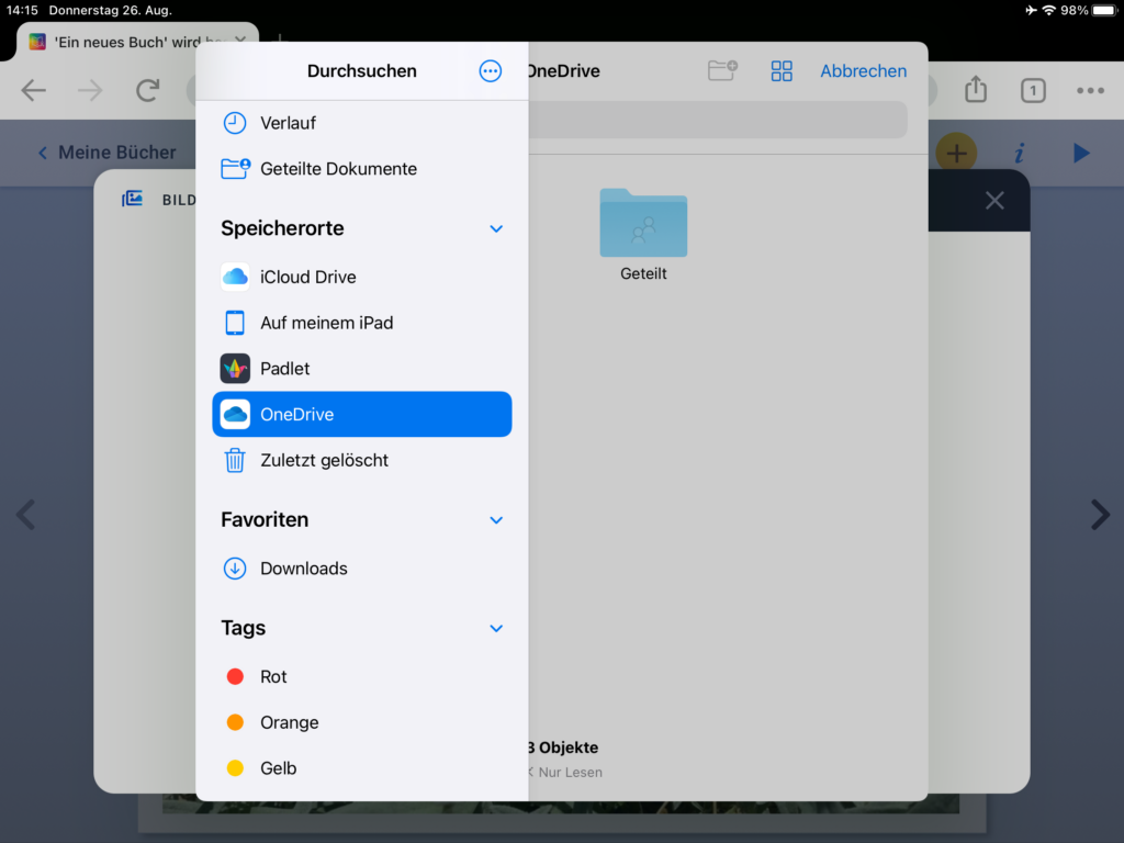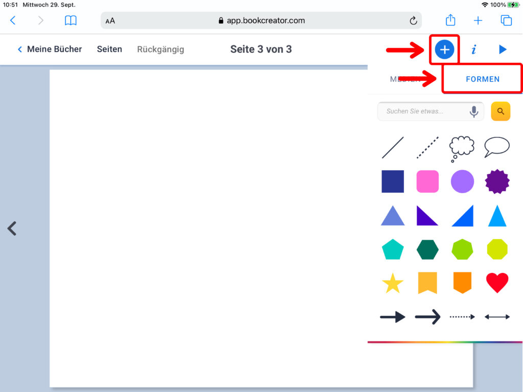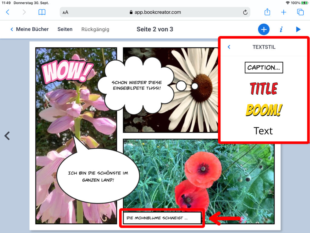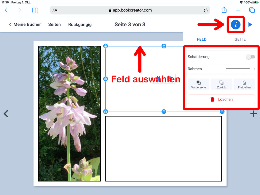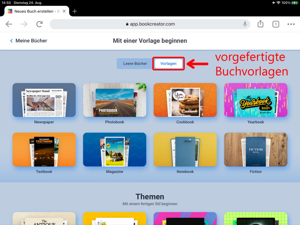 WICHTIG: Wenn mehrere Personen auf verschiedenen iPads an einem gemeinsamen Buch arbeiten, das am Ende zusammengefügt werden soll, muss zwingend das gleiche Format ausgewählt werden!