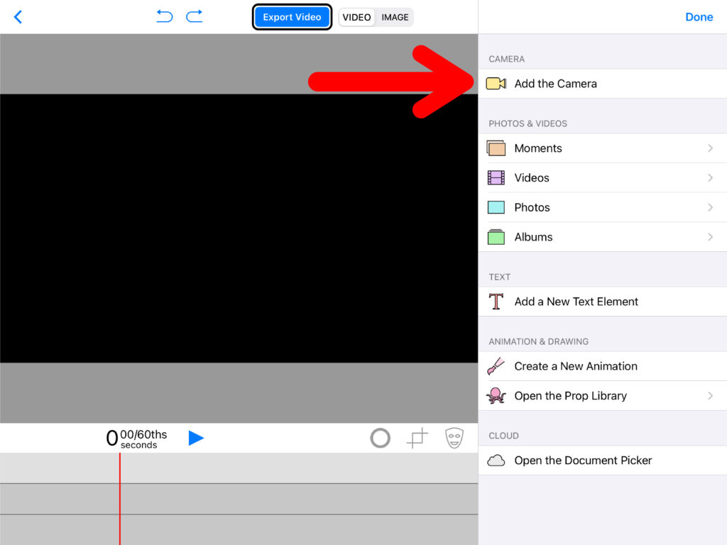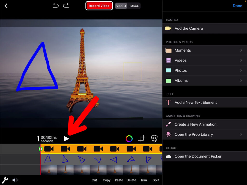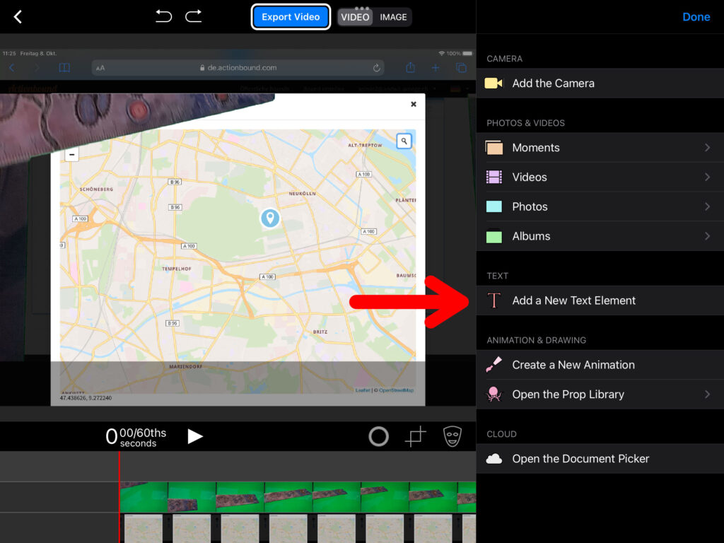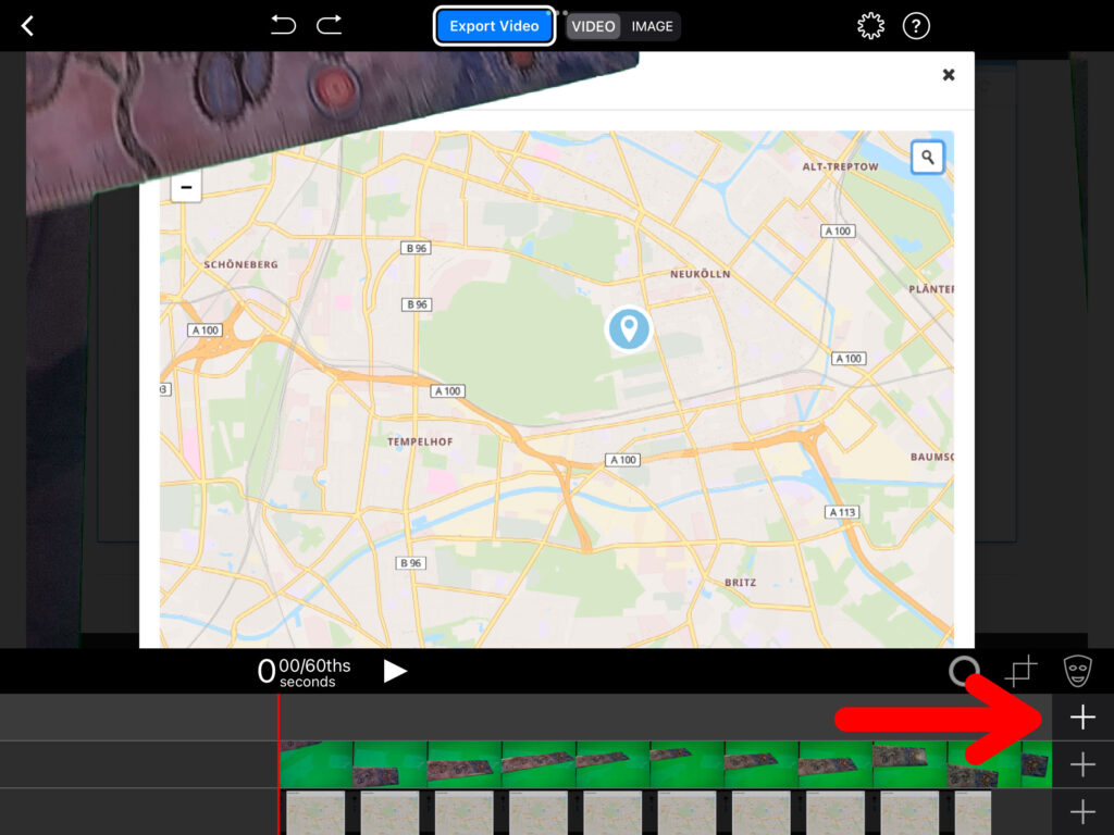 Über einen Klick auf das Plus-Zeichen in der mittleren Spur und anschliessend «Add the Camera», können Greenscreen-Aufnahmen auch gleich in der App selbst erstellt werden, wenn diese nicht vorgängig bereits aufgenommen wurden.