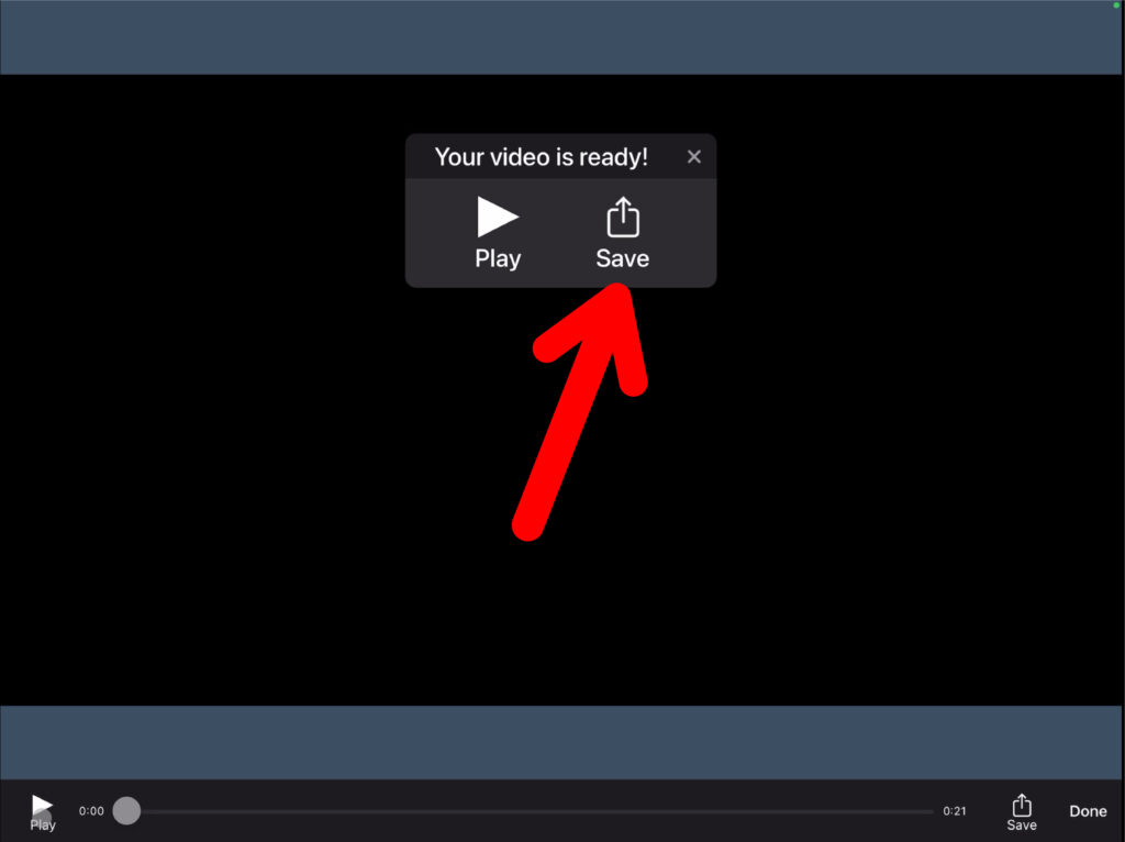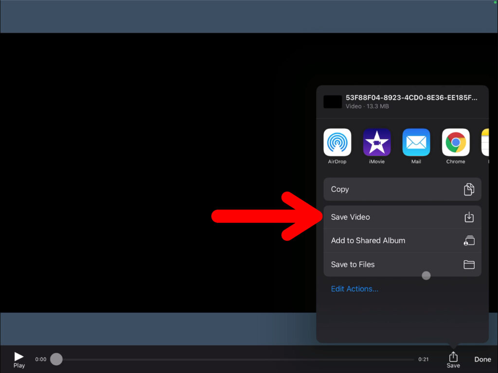 Klicke auf «Save», um das Bild oder Video abzuspeichern. Du hast nun die Möglichkeit, das Video auf deinem iPad abzuspeichern (Save Video oder Save to Files) oder zum Beispiel in deinen OneDrive-Ordner zu exportieren.
