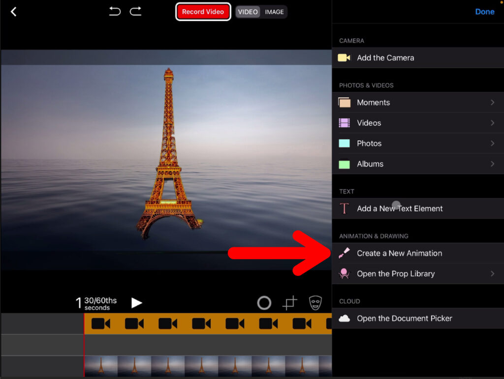 Du kannst über die Greenscreen-Aufnahme Animation hinzufügen. Auch diese werden in der obersten Spur eingefügt. Klicke dazu auf das Plus-Symbol und danach auf «Create a New Animation».