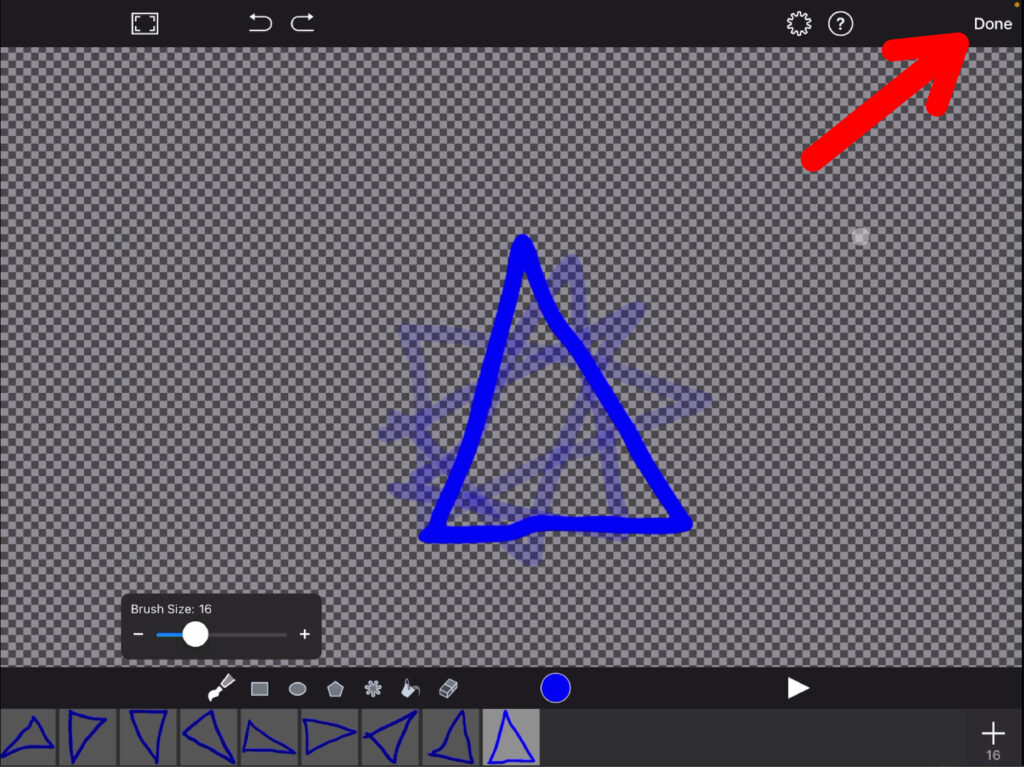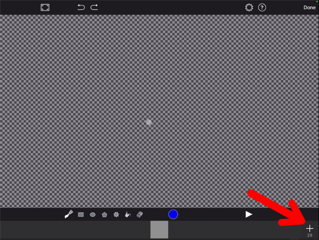 Auf der erscheinenden Zeichenfläche kannst du nun zeichnen, was du einfügen möchtest. Die Animation besteht aus mehreren Bildern, die nacheinander abgespielt werden. Erstelle das erste Bild und klicke anschliessend unten rechts auf das Plus-Symbol, um eine weitere Form oder ein Bild zu zeichnen. Dabei stehen dir natürlich die zeichen-typischen Funktionen wie Pinselgrösse anpassen, Farben ändern, Formen zeichnen usw. zur Verfügung.