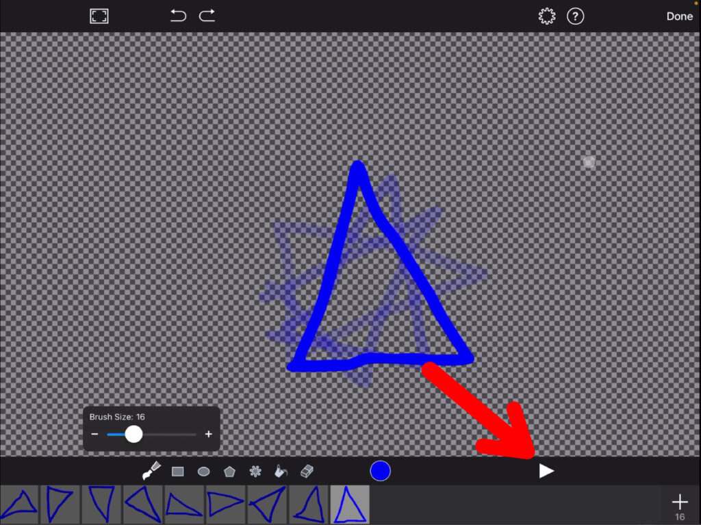 Hast du alle einzelnen Szenen gezeichnet, kannst du mit dem «Play» Symbol deine Animation abspielen.