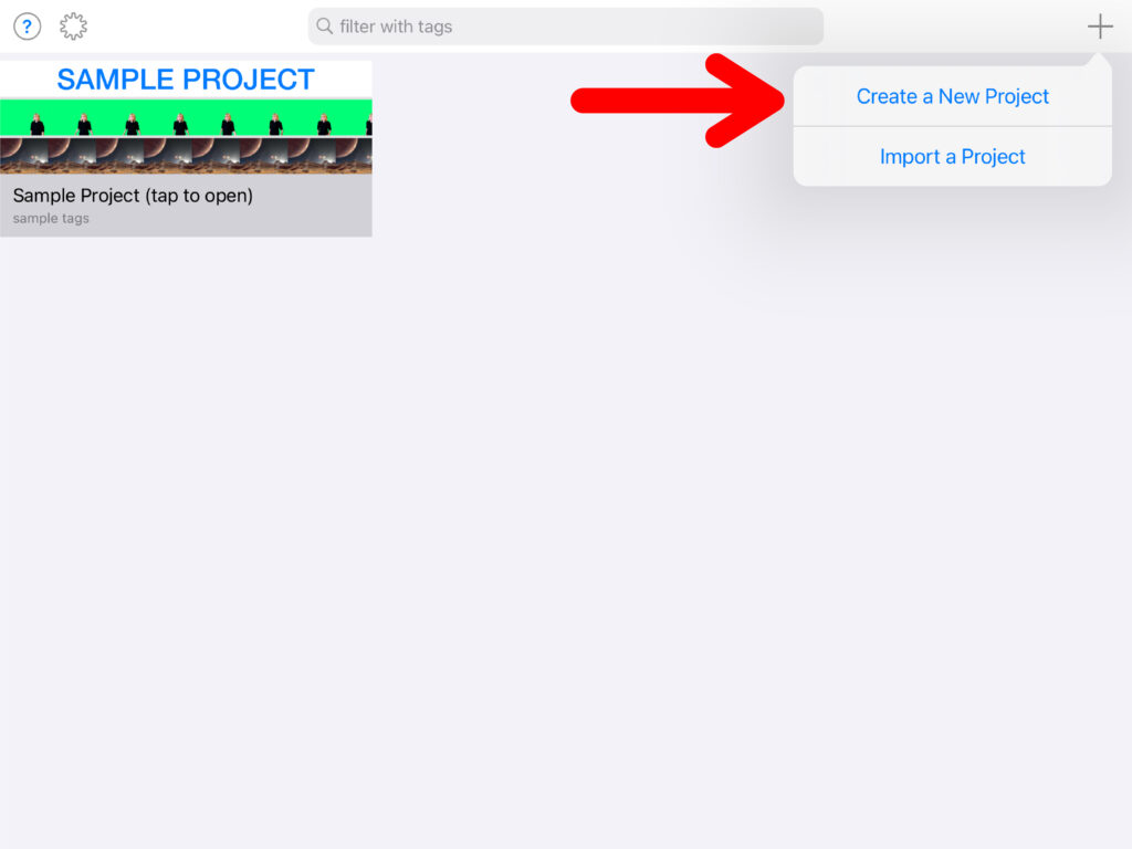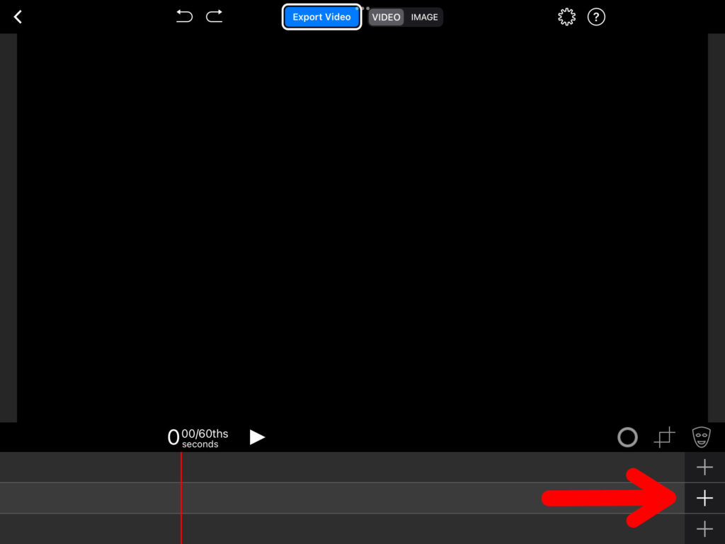 Um ein neues Projekt zu erstellen, musst du oben rechts auf das Plus-Symbol klicken und «Create a New Project» auswählen. Nun hast du ein neues Projekt eröffnet. Oben in der Mitte kannst du auswählen, ob als Endprodukt ein Video oder ein Foto entstehen soll. Am unteren Bildschirmrand erscheinen drei Spuren, welche mit Inhalten gefüllt werden können.
