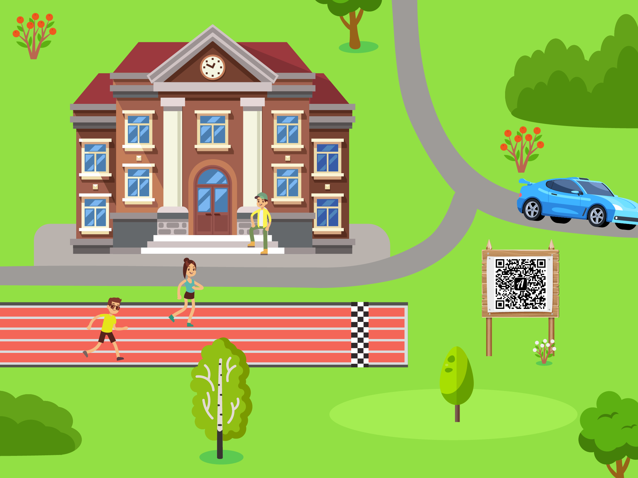 Deine Tour mit dem iPad beginnt hier mit einem Kurzsprint vor dem Schulhaus. Öffne auf deinem iPad die App Actionbound und scanne mit dieser den QR-Code. Viel Spass!
