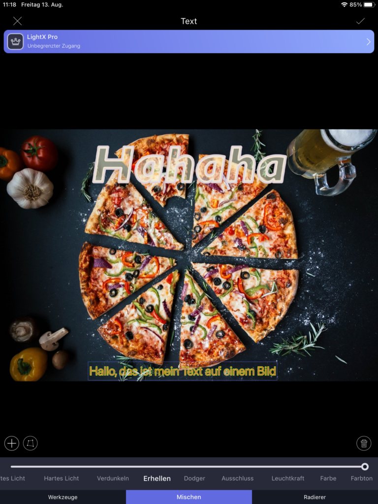 Öffne die App «LightX» auf dem iPad. Du findest sie im Ordner «Medienproduktion».