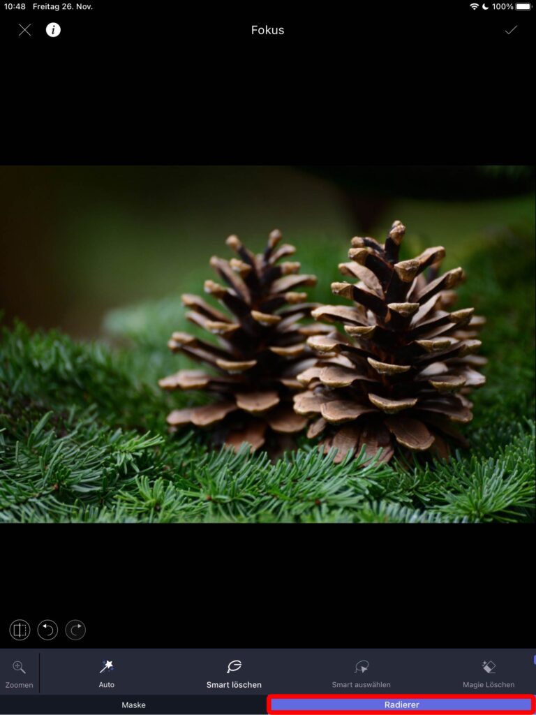 Mit dem «Radierer» kannst du Bildausschnitte wiederherstellen oder korrigieren. Er macht also das genaue Gegenteil, wie der Stift.