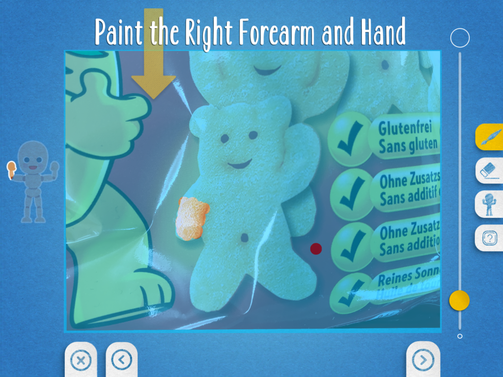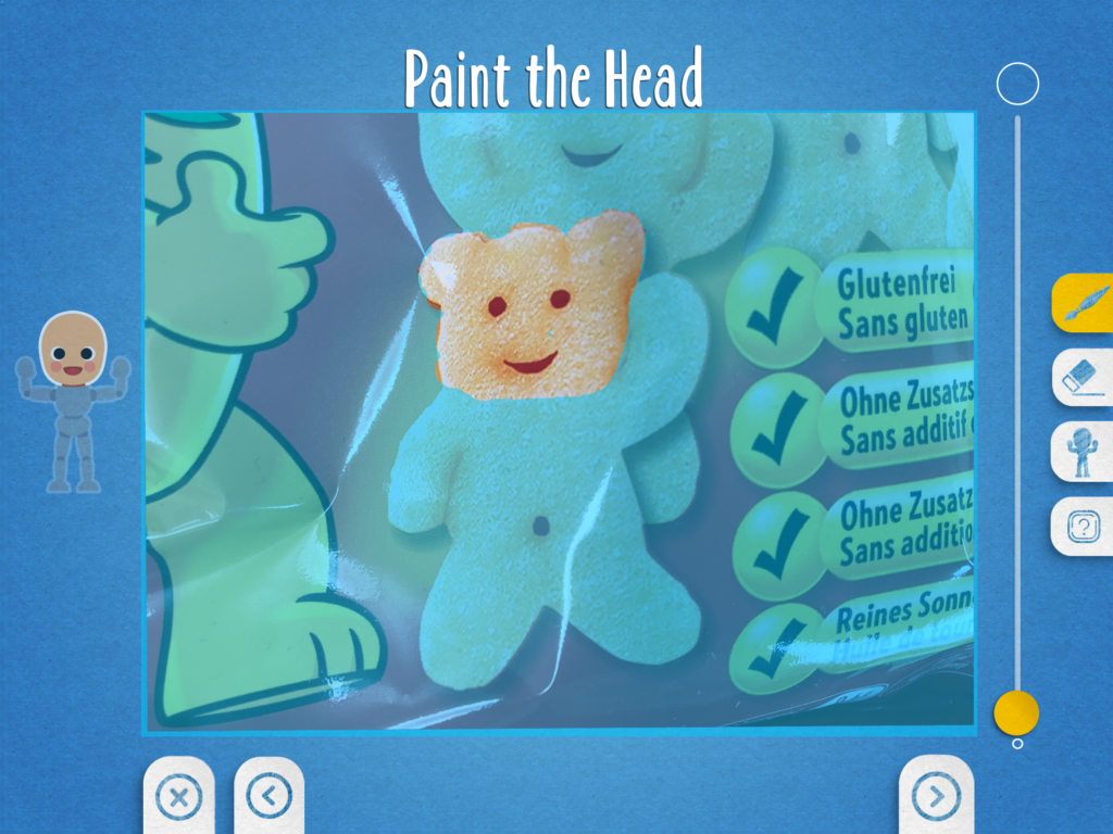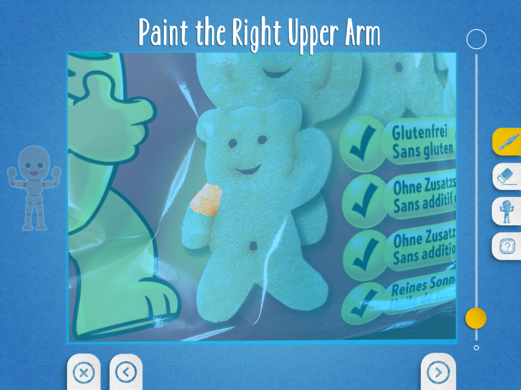 Hast du ein Foto aufgenommen oder ein Bild importiert, so müssen im nächsten Schritt die Körperteile der Figur alle einzeln markiert werden. Oben steht immer jeweils, was als nächstes markiert werden soll. Hier eine kurze Tabelle, die dir hilft, den Überblick zu behalten: