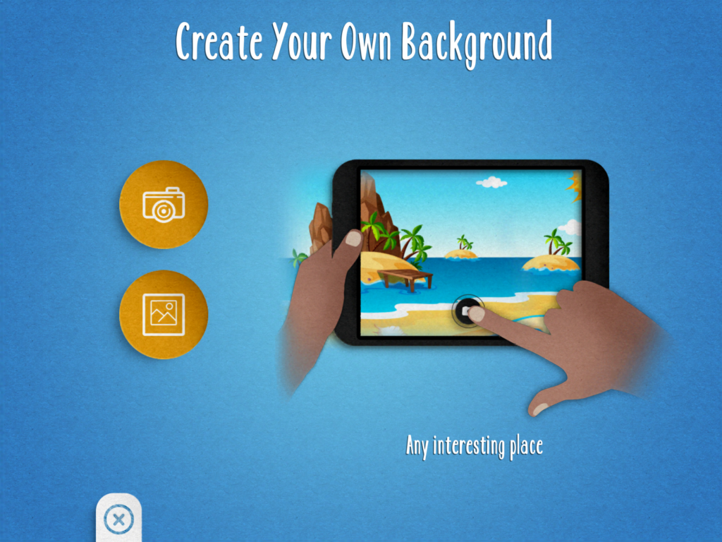 Um einen anderen Hintergrund auszuwählen, klickst du oben links das Symbol mit dem gelben Haus. Scrollst du nun nach unten, so kannst du aus den Vorschlägen der App den gewünschten Hintergrund auswählen. Wenn du einen eigenen Hintergrund wie zum Beispiel eine eigene Zeichnung benutzen möchtest, dann klickst du auf das oberste Bild mit dem Plus-Zeichen. Hier kannst du nun ein Bild deines Hintergrunds erstellen oder ein bereits erstelltes Bild hochladen.