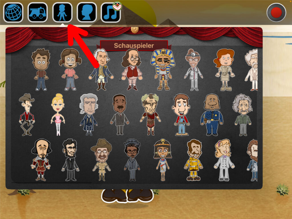 Klickst du auf das Feld mit der Person, so kannst du Figuren auswählen, die teilweise an historische Personen angelehnt sind.