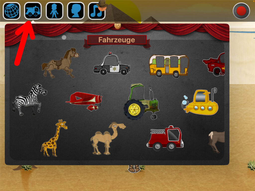 Beim Bewegen der Figur läuft oder fährt sie mithilfe einer Lauf- oder Fahranimation automatisch in die gewünschte Richtung. Du kannst deine Figur in den Vordergrund setzen, indem du sie nach vorne bewegst. Wenn du sie nach hinten ziehst, wird sie automatisch kleiner und steht im Hintergrund der Szene. Ziehst du an den Gliedmassen (Armen und Beinen), so können diese in alle Richtungen bewegt werden.