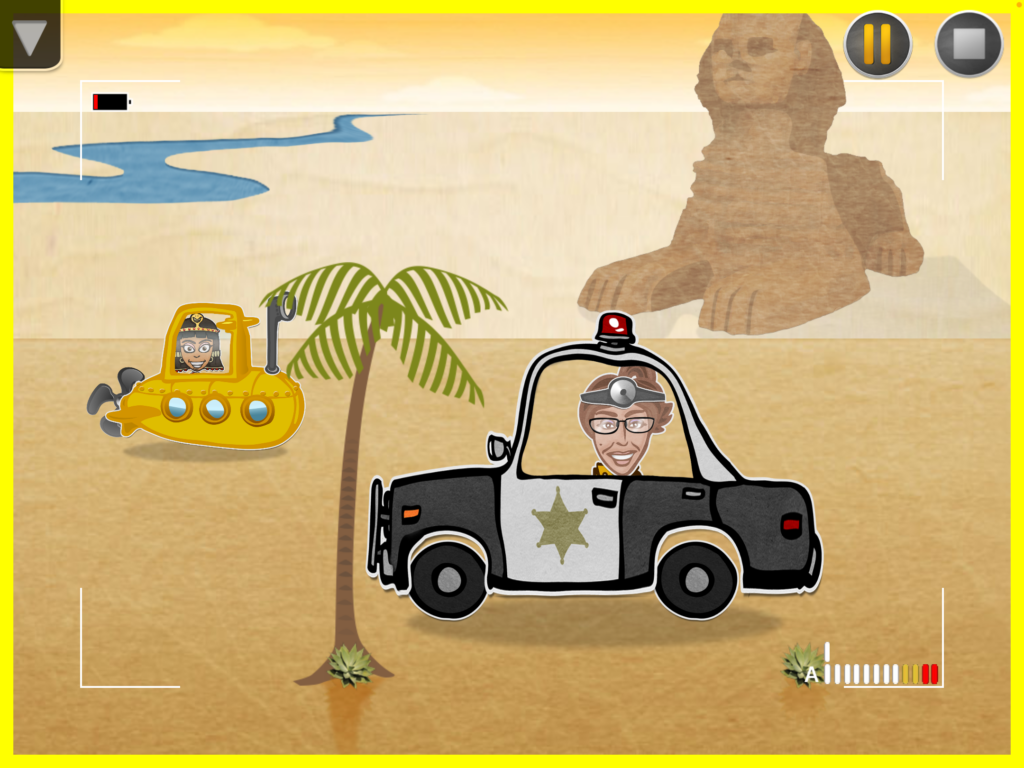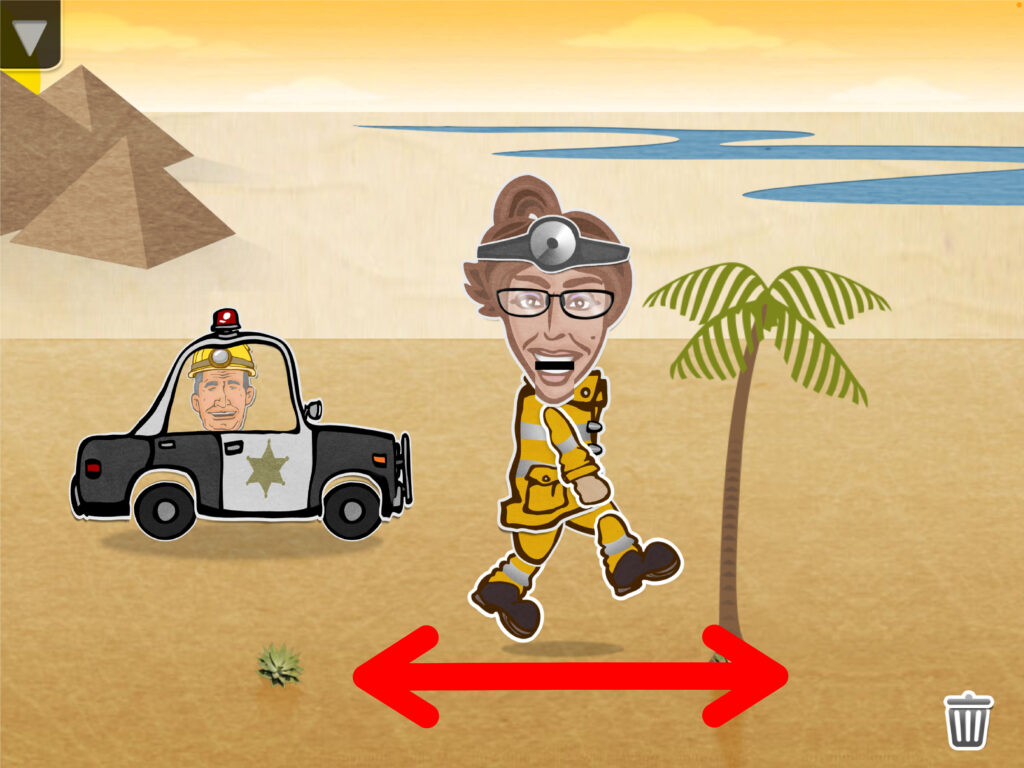 Mit der App Puppet Pals können auf einfache Art und Weise kurze Animationsfilme mit verschiedenen Figuren erstellt werden. Mit Hilfe der Fotofunktion kann auch der eigene Kopf auf eine eingefügte Figur gesetzt werden. Die erstellten Figuren gehen, sprechen, bewegen ihre Gliedmassen, erforschen dabei verschiedene Landschaften und können sich sogar mit verschiedenen Transportmitteln wie Kamelen, Giraffen, Flugzeugen, Autos und mehr fortbewegen.
