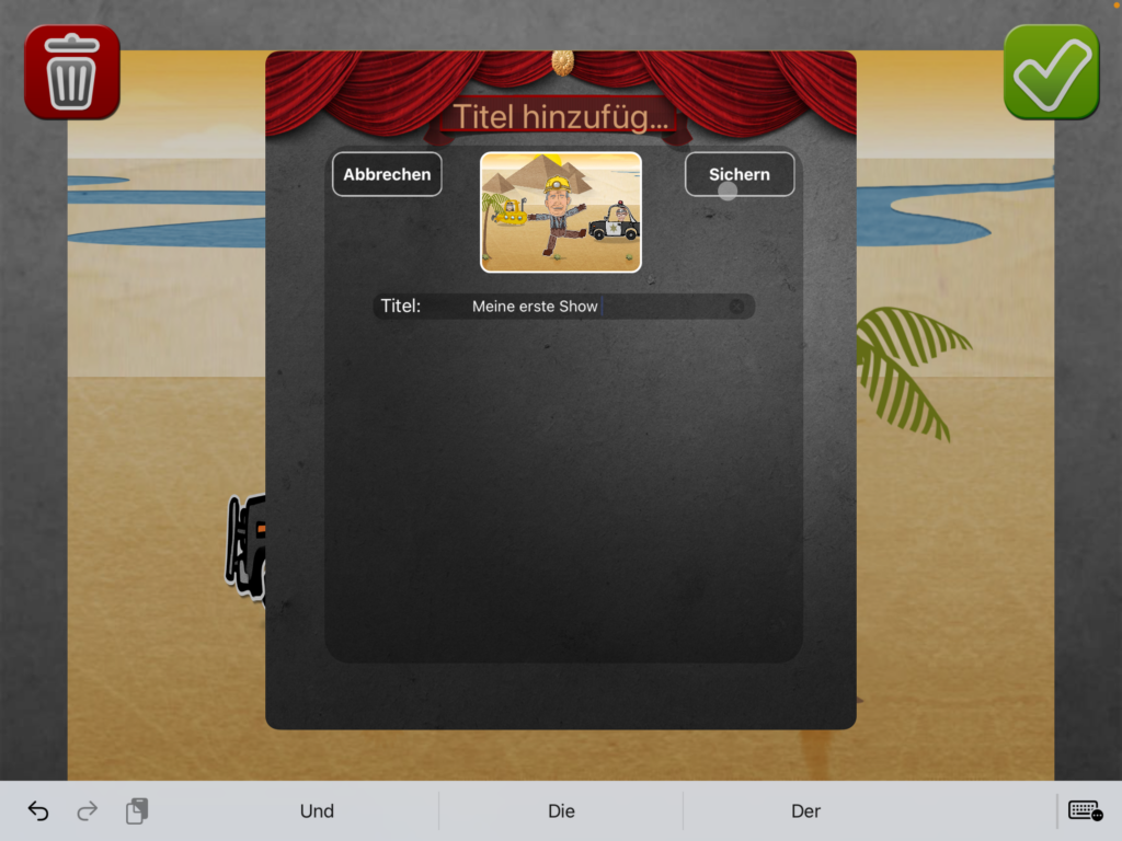 Auf der nächsten Seite kannst du deinem Schauspiel einen passenden Titel geben. Bist du zufrieden, so klickst du auf «Sichern» und das Projekt wird in der Foto-Mediathek deines iPads abgespeichert.